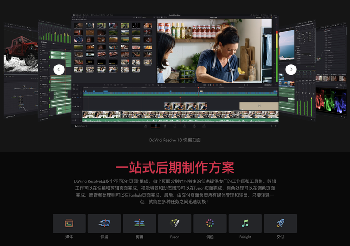 DaVinci Resolve是一款在同一个软件工具中,将剪辑、调色、视觉特效、动态图形和音频后期制作融于一身的一站式解决方案!它采用美观新颖的界面设计,易学易用,能让新手用户快速上手操作,还能提供专业人士需要的强大性能。有了DaVinci Resolve,您无需学习使用多款软件工具,也不用在多款软件之间切换来完成不同的任务,从而以更快的速度制作出更优质的作品。这意味着您在制作全程都可以使用摄影机原始画质影像。