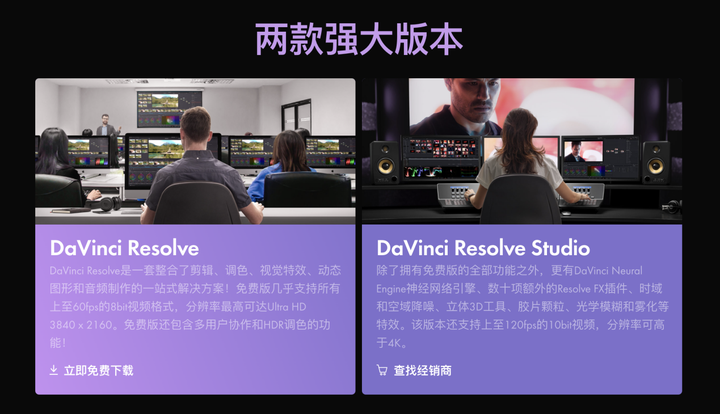 Davinci Resolve免费版本和Davinci Resolve Studio付费版本